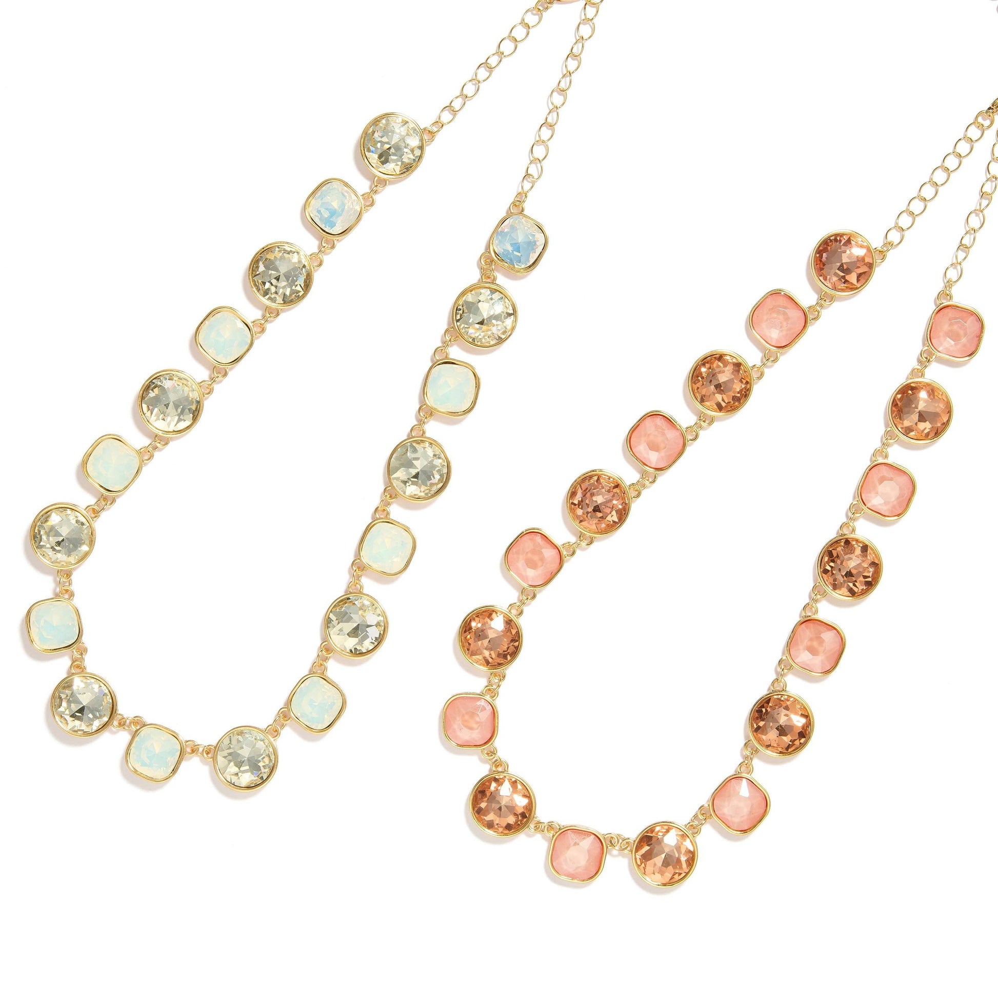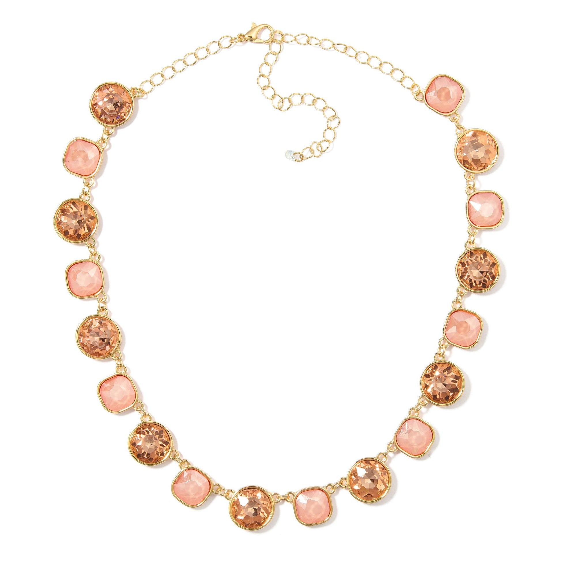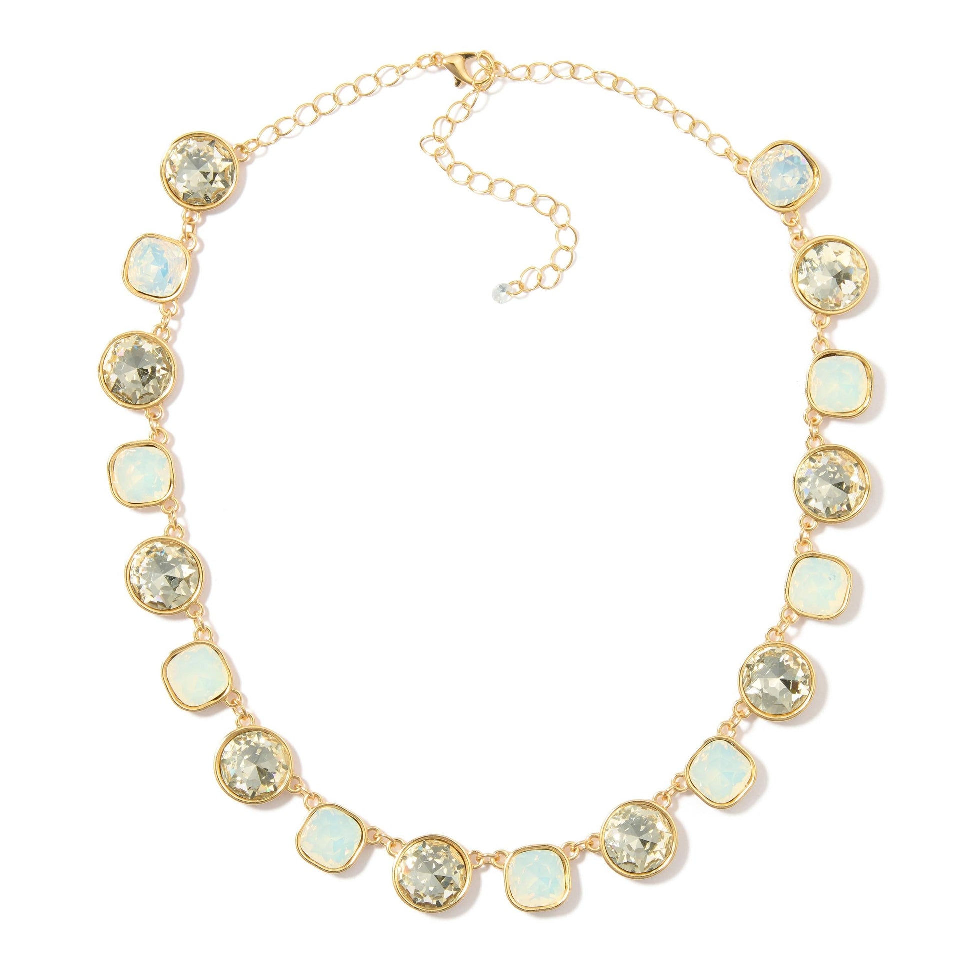 Round & Square Rhinestone Chain Link Necklace