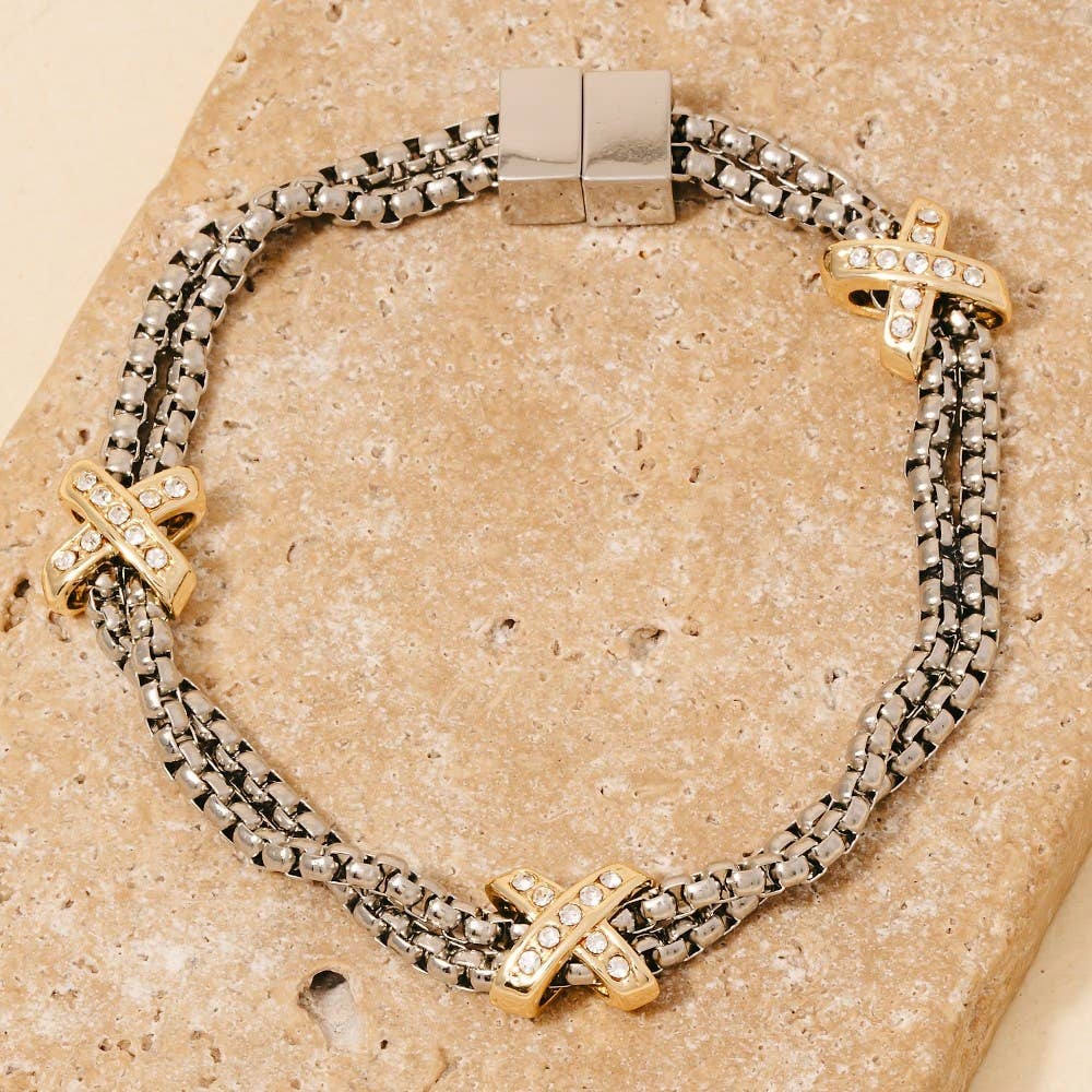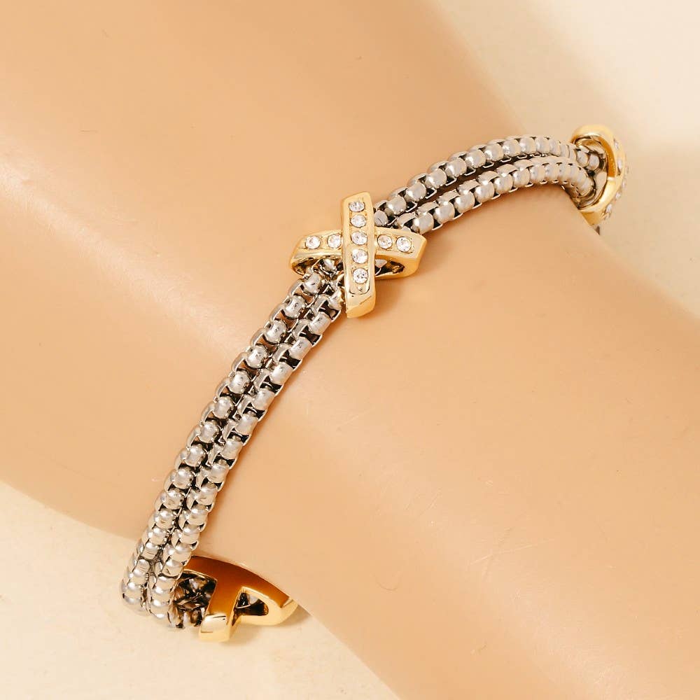 2 Tone Gold Plated Cz Pave Double Rope Chain Bracelet