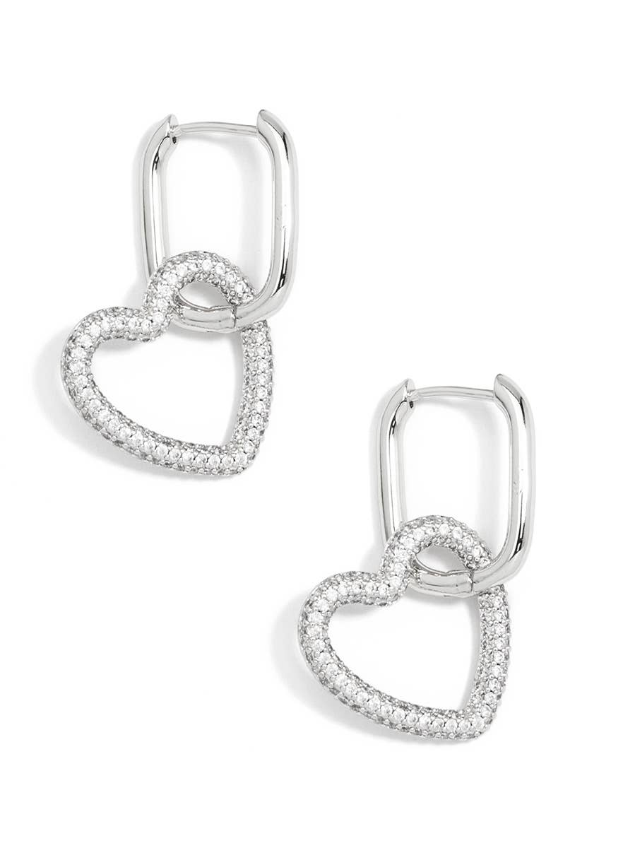 Drop earring composed of triple coated 18k gold-plated brass oblong links. Features a heart-shaped cubic zirconia pavé crystal link as a drop.