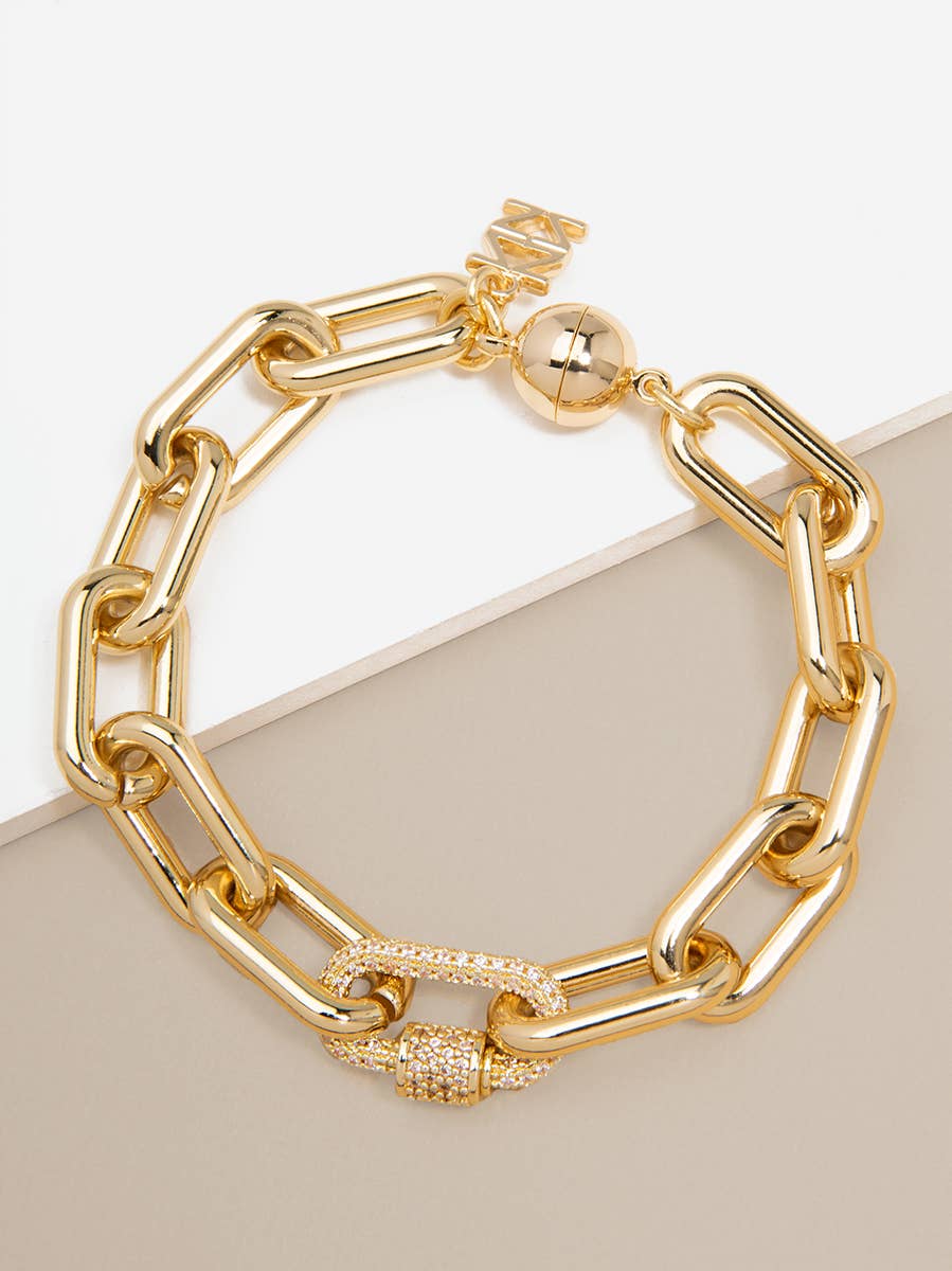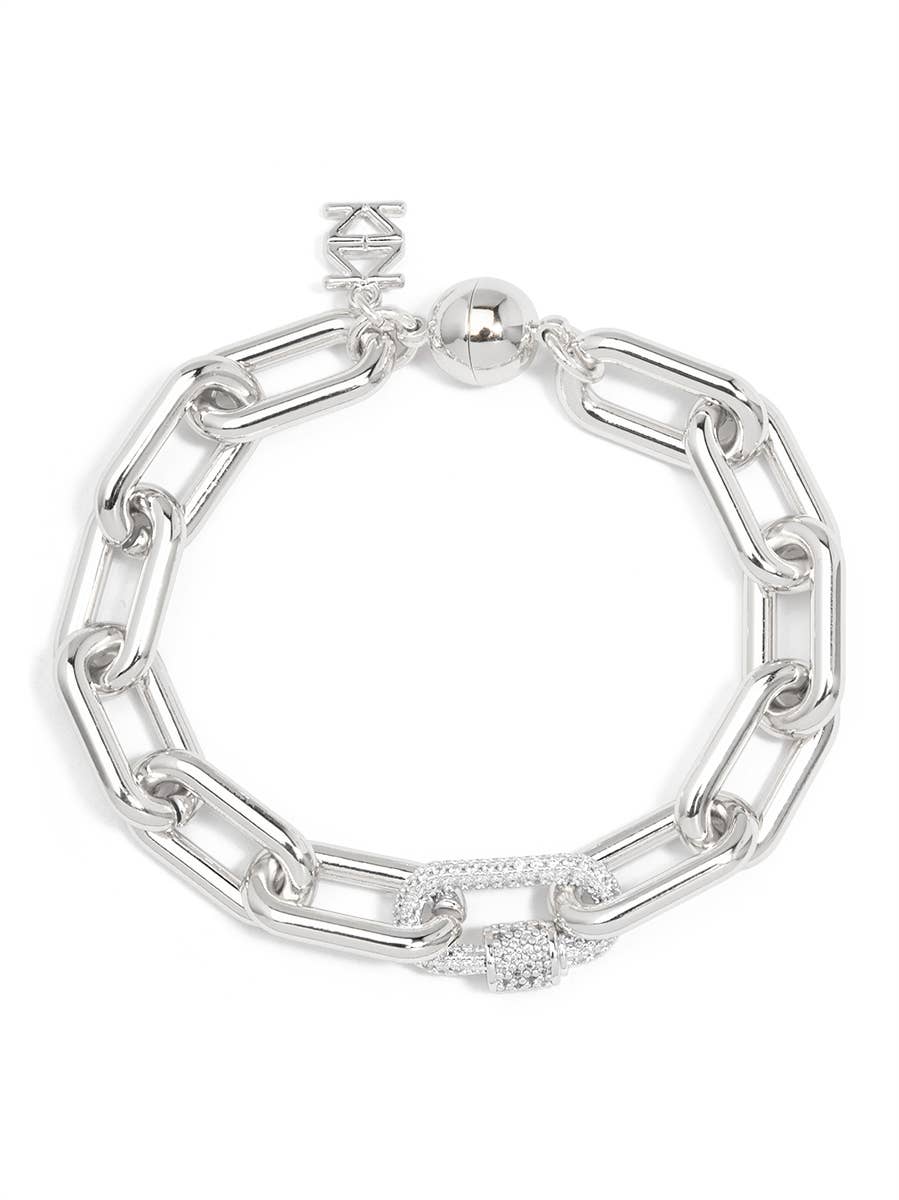 Link bracelet embellished with a pavé set cubic zirconia charm and magnetic closure.