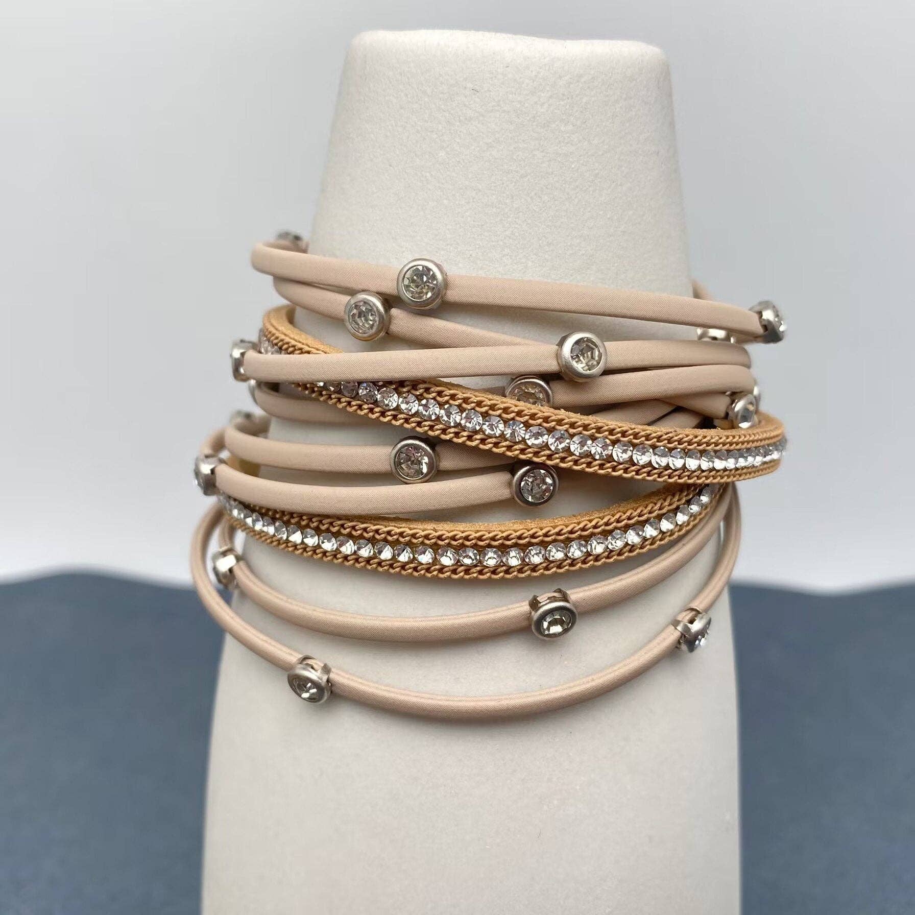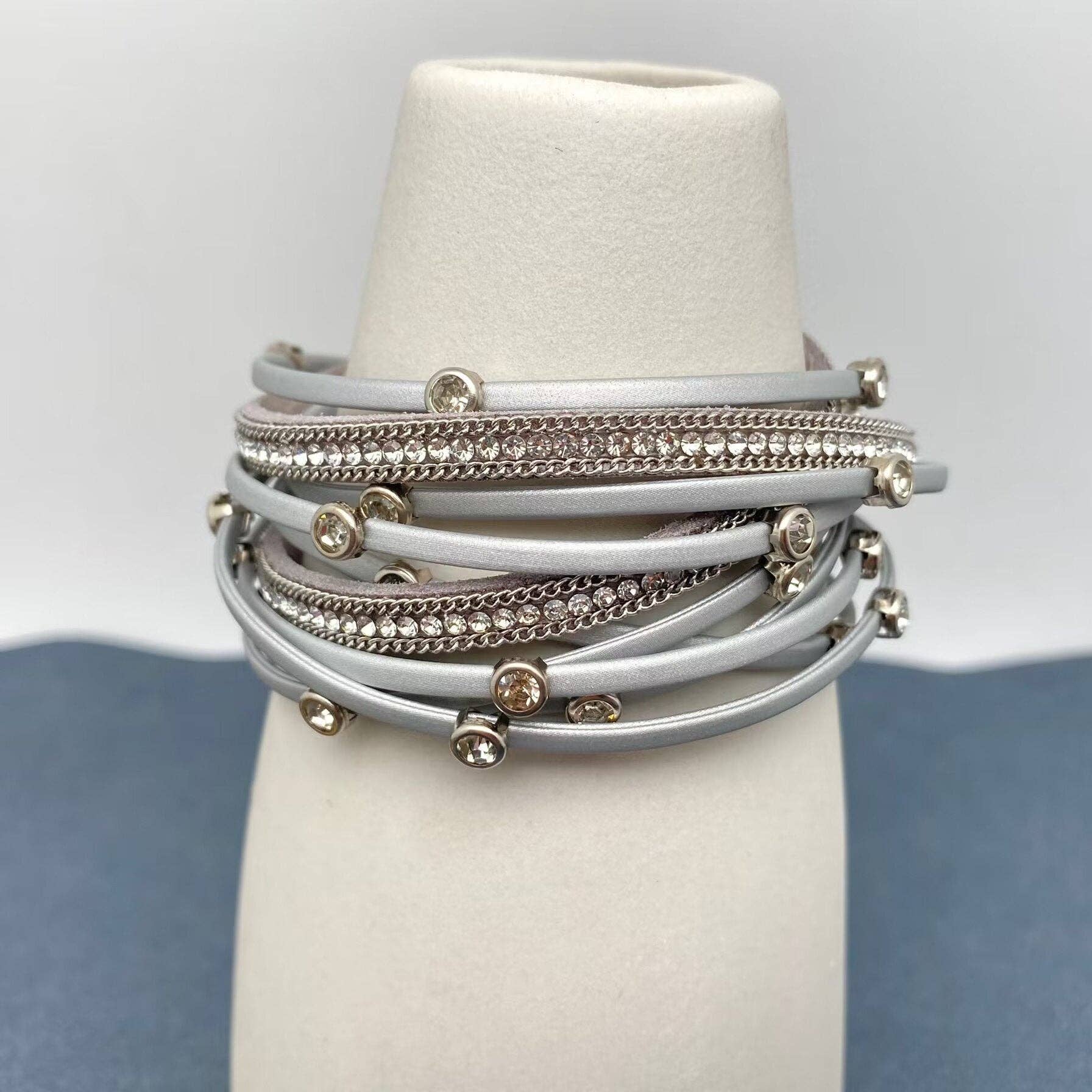 CZ Multi-layer Leather Magnetic Buckle Bracelet - BJ/LB