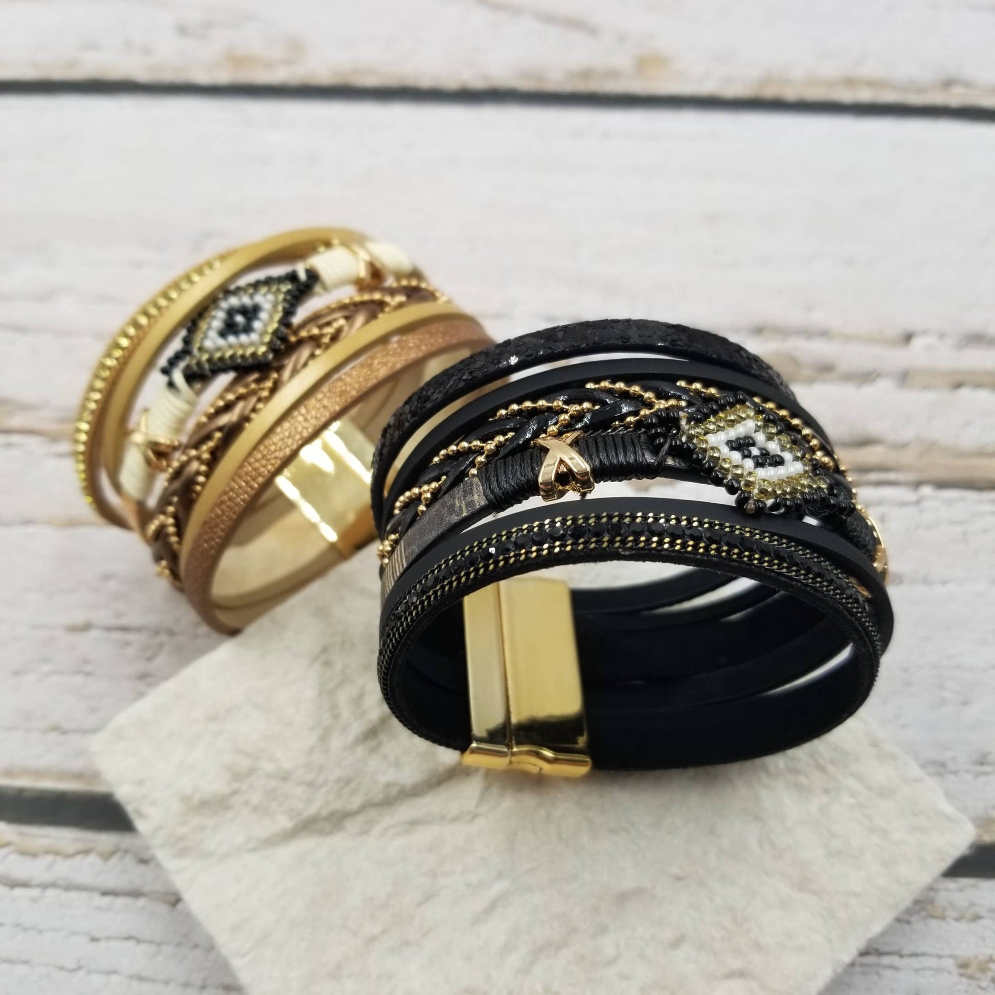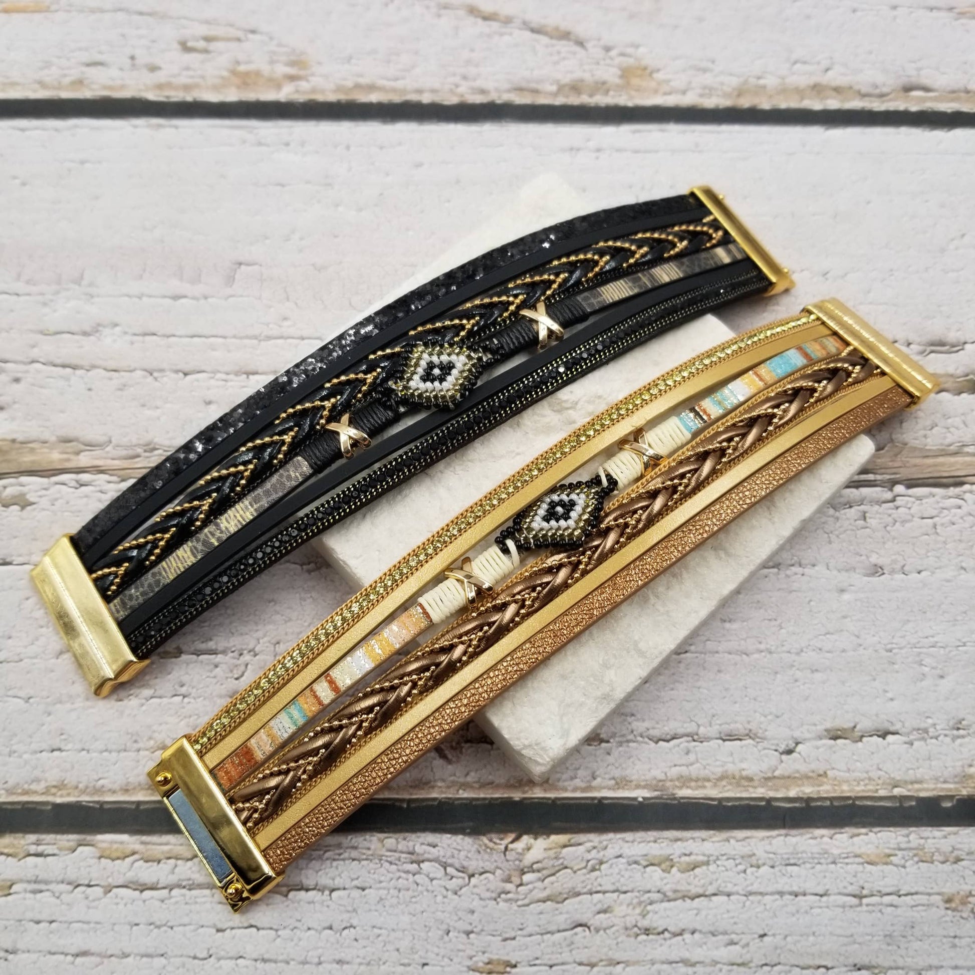 Evil Eye Boho Seed Bead Leather Bracelet