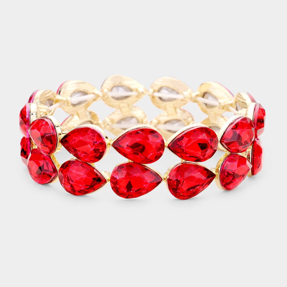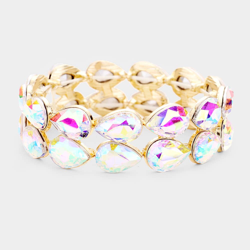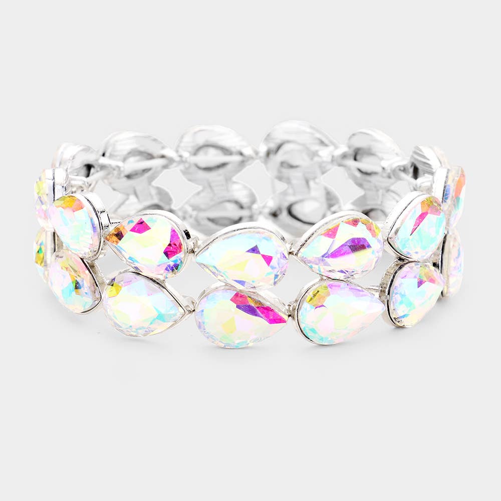Glass Crystal Teardrop Stretch Evening Bracelet