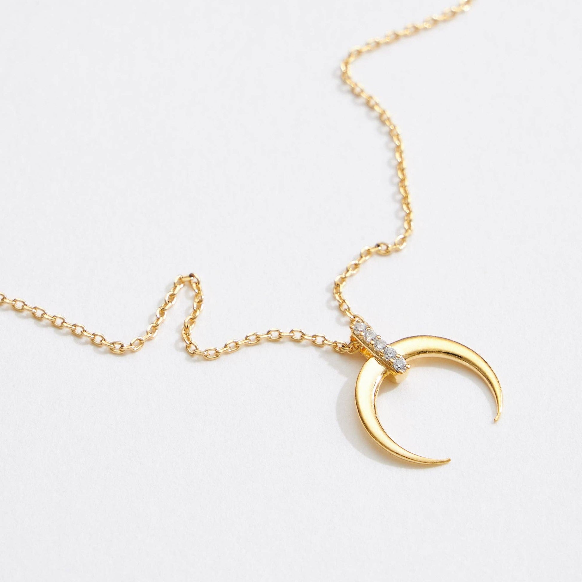 Gold Dipped CZ Crescent Pendant Necklace