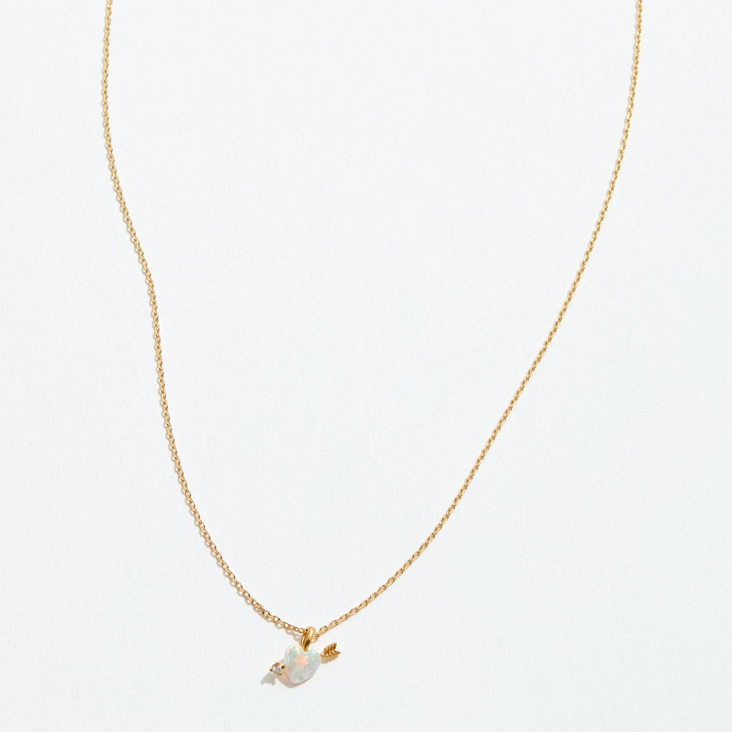 Add a romantic sparkle to your style with this gold opal heart arrow pendant necklace, featuring a luminous heart-shaped opal accented with a delicate gold arrow and a sparkling crystal. Crafted with a polished gold finish, the pendant offers a dreamy, love-inspired design that catches the light beautifully. The fine chain provides lightweight comfort and secures with a lobster clasp, making it perfect for everyday wear or special occasions. A charming piece that blends elegance with sentiment, ideal for gifting or adding a touch of romance to your jewelry collection.