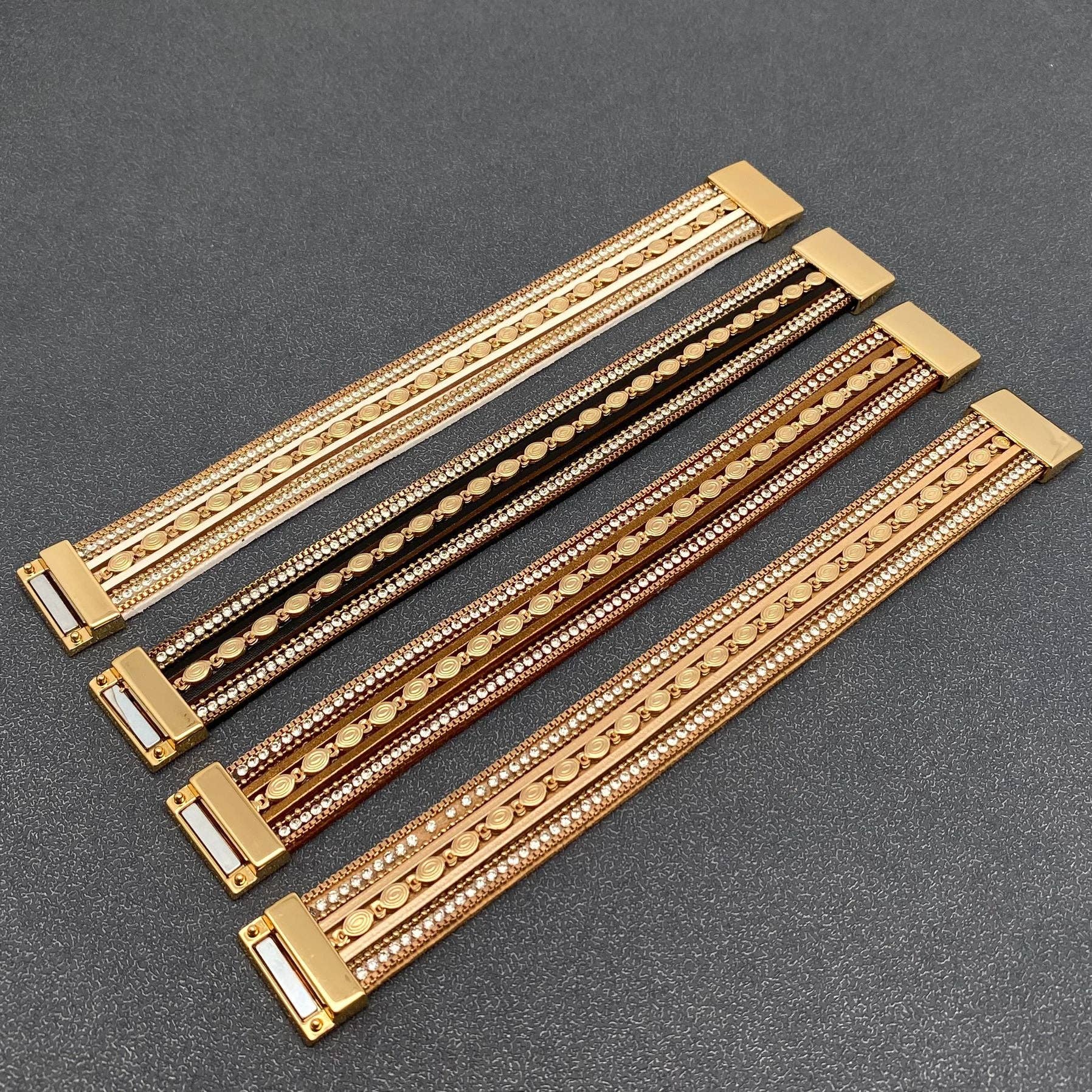 Sparkling Rhinestone & Leather Triple-Layer Boho Bracelet