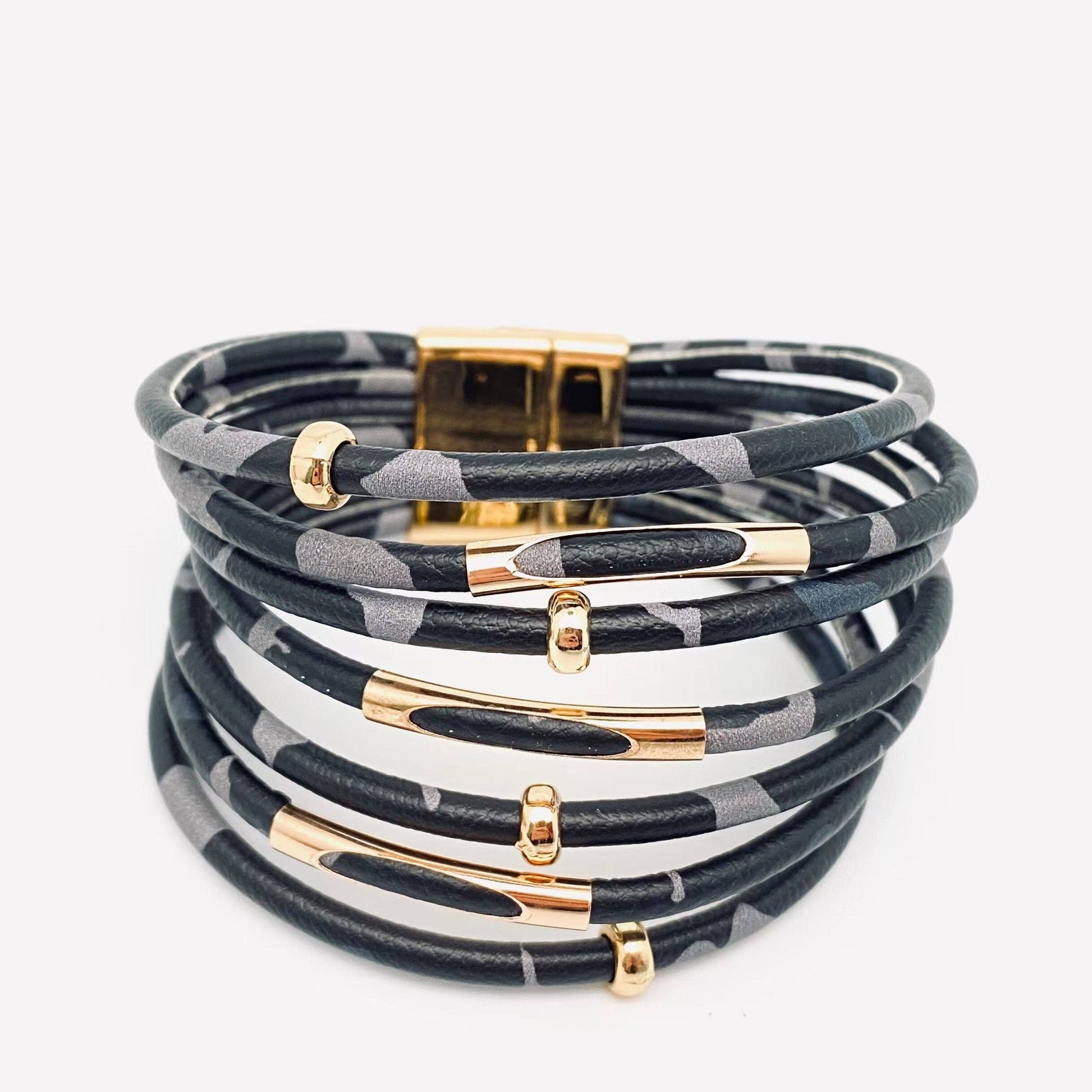 Magnetic Buckle Leopard-Print Multilayer Beaded Bangle