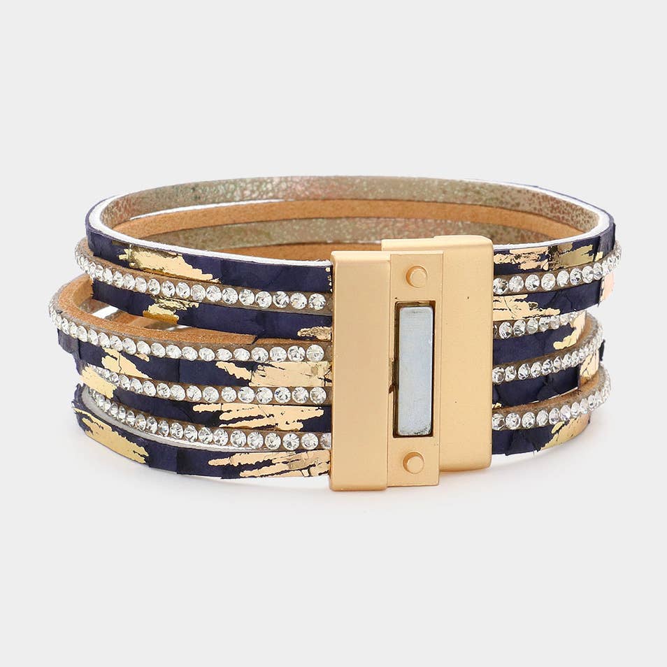 Rhinestone Paved Chain Faux Leather Magnetic Bracelet