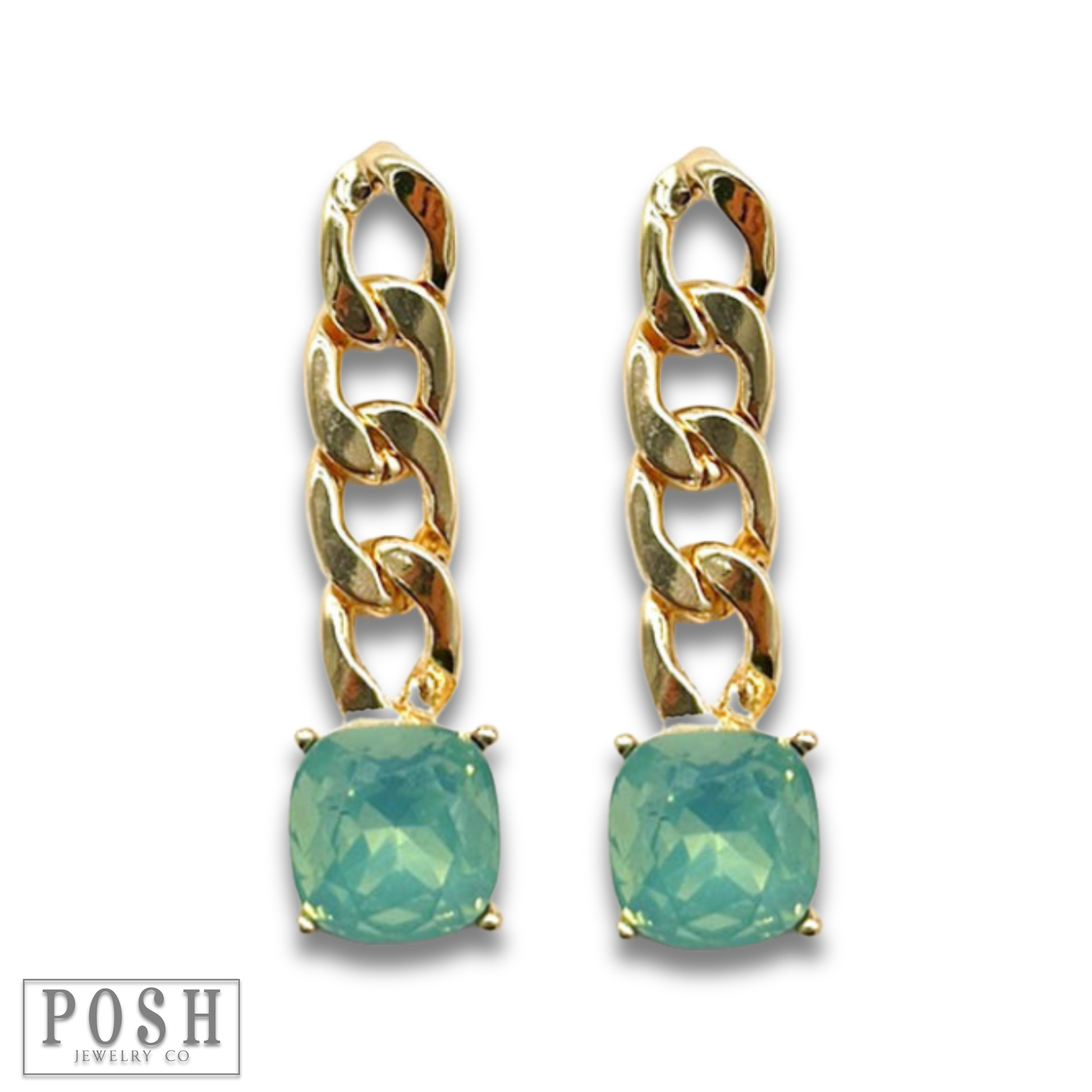 These chain link post earrings feature a sparkling square drop of rhinestone bling!