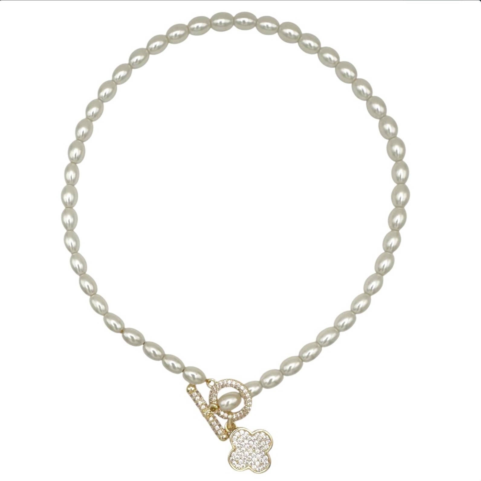 Stunning seed Pearl statement necklace Pave lover pendant Toggle style closure Easy wear and removal - See matching bracelet! 💕