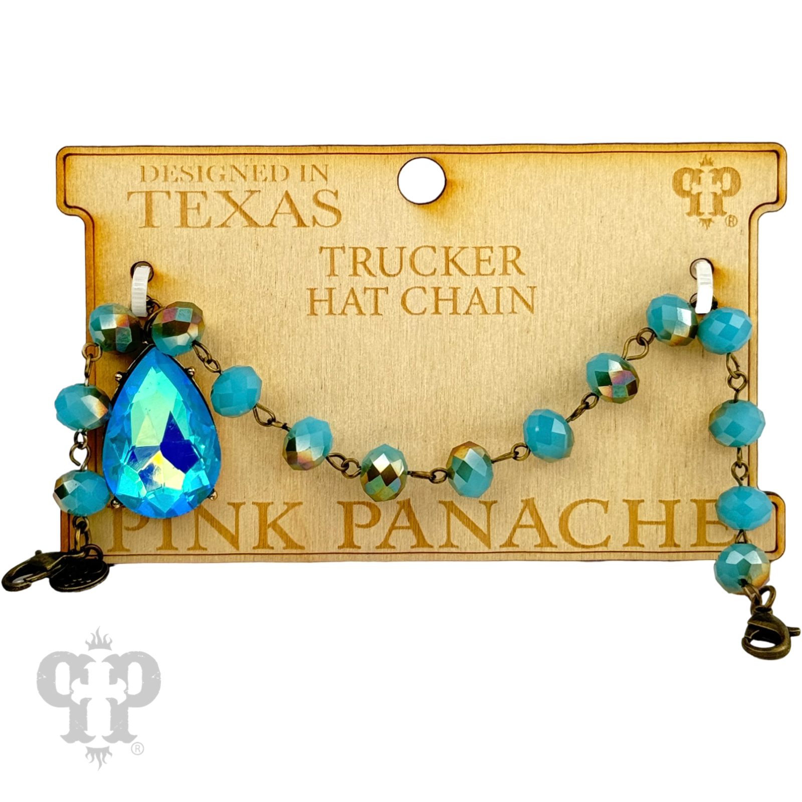 Bling up the trucker hat with a 12mm linked bead chain featuring a prong set large teardrop shape rhinestone. The lobster clasp on either end makes it easy to change them out with other chains. Product details * Linked bead and chain * Large teardrop rhinestone * Will fit most trucker hats and caps.